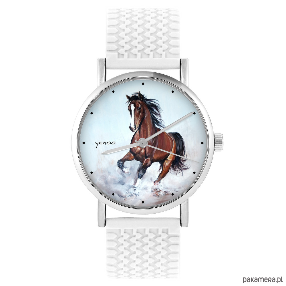 Zegarek - Koń brązowy - silikonowy, biały