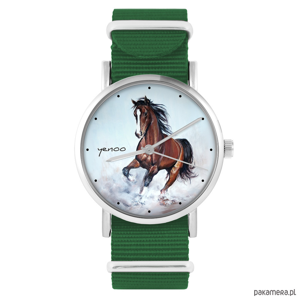 Zegarek - Koń brązowy - zielony, nylonowy