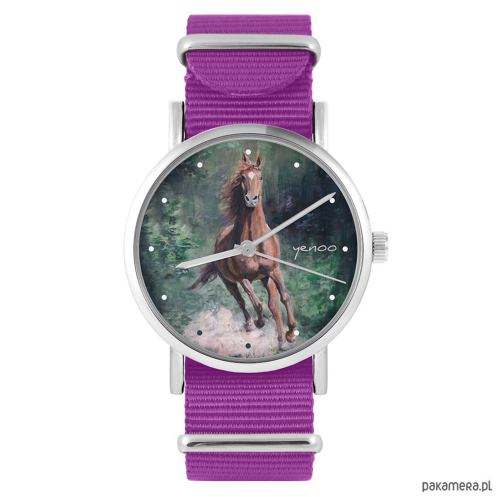 Zegarek - Koń, las - amarant, nylonowy