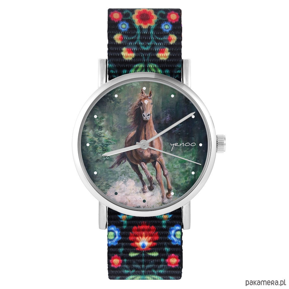 Zegarek - Koń las - folk czarny, nylonowy