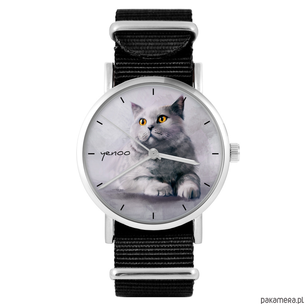 Zegarek - Kot brytyjski - czarny, nylonowy