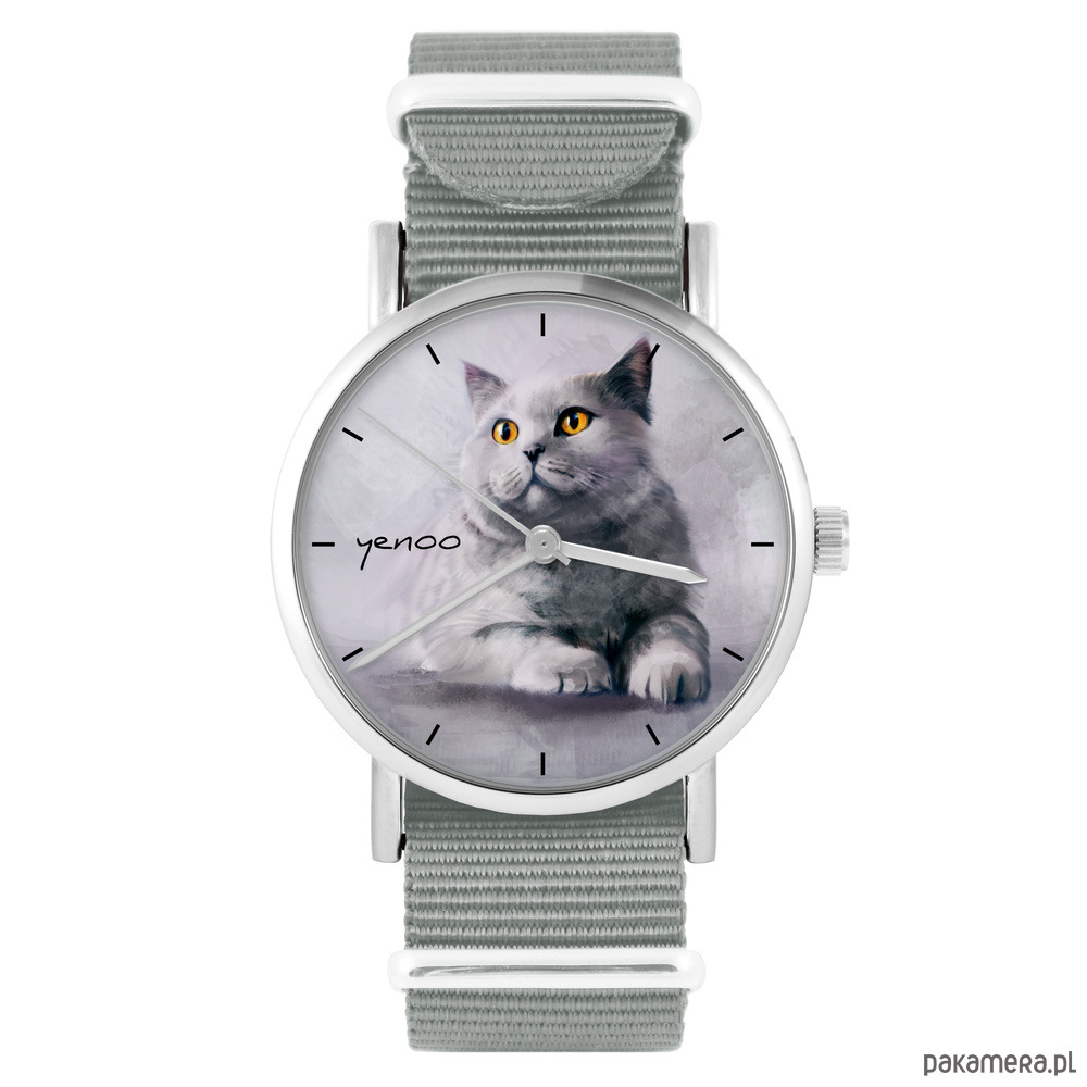 Zegarek - Kot brytyjski - szary, nylonowy
