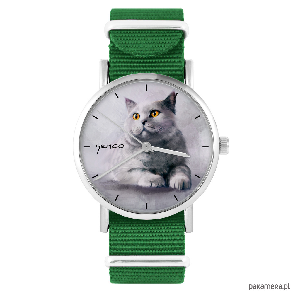 Zegarek - Kot brytyjski - zielony, nylonowy