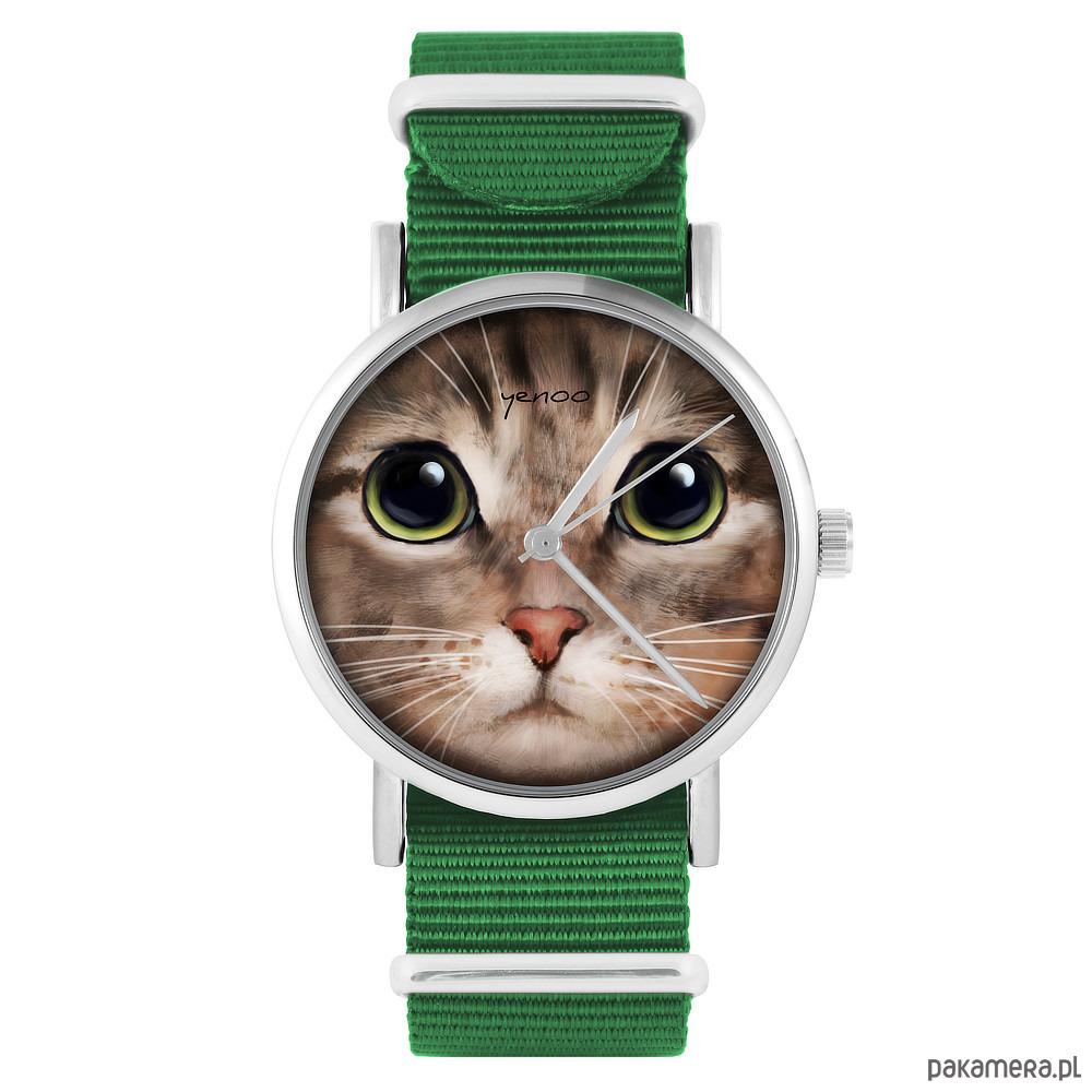 Zegarek - Kot tygrysek - zielony, nylonowy