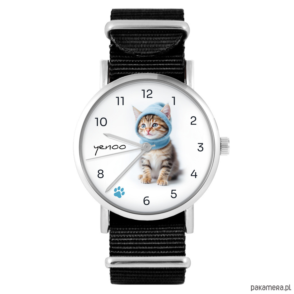 Zegarek - Kotek - czarny, nylonowy