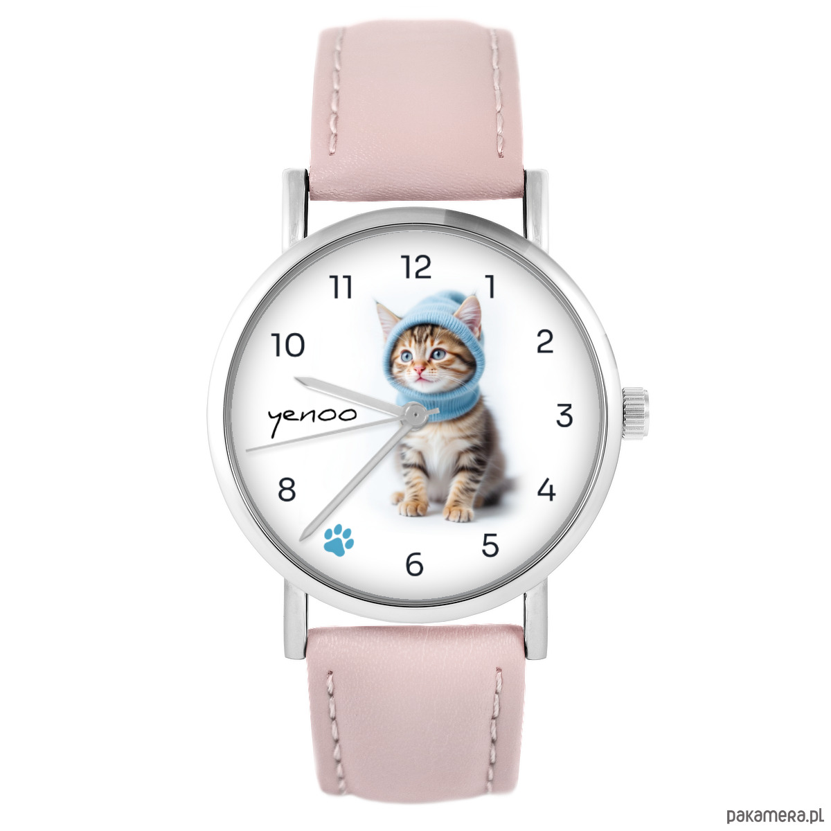 Zegarek - Kotek - pudrowy róż, skóra