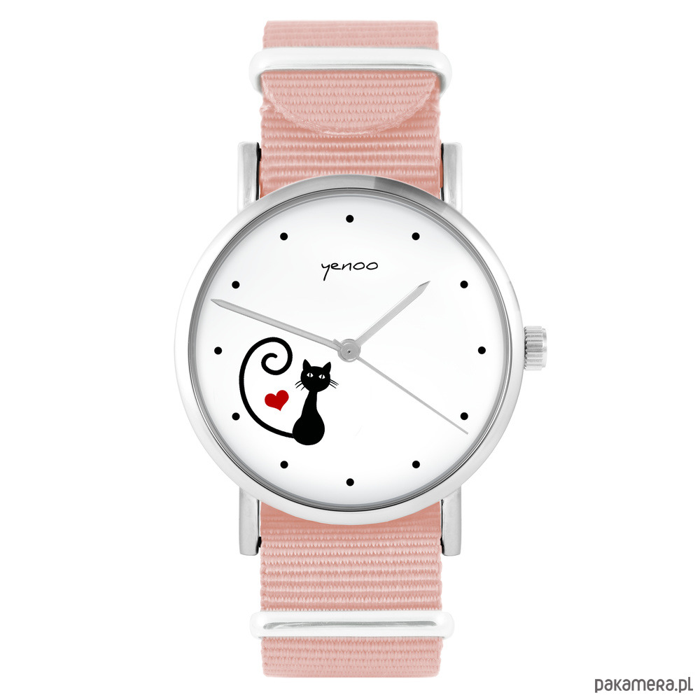 Zegarek - Kotek, serce - brzoskwiniowy róż