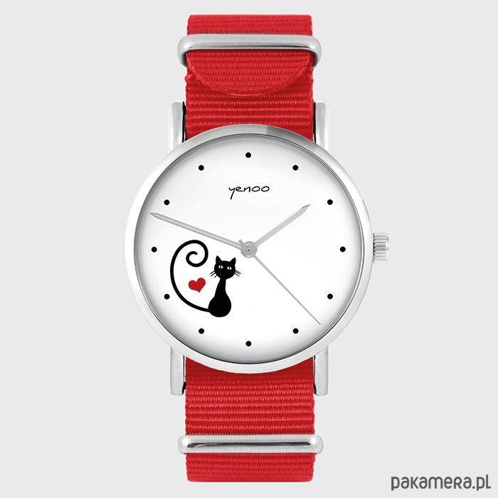 Zegarek - Kotek, serce - czerwony, nylonowy
