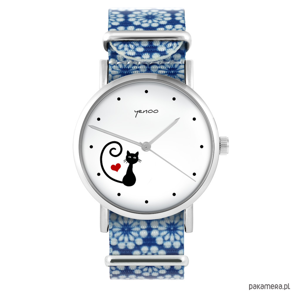 Zegarek - Kotek, serce - niebieski, kwiaty