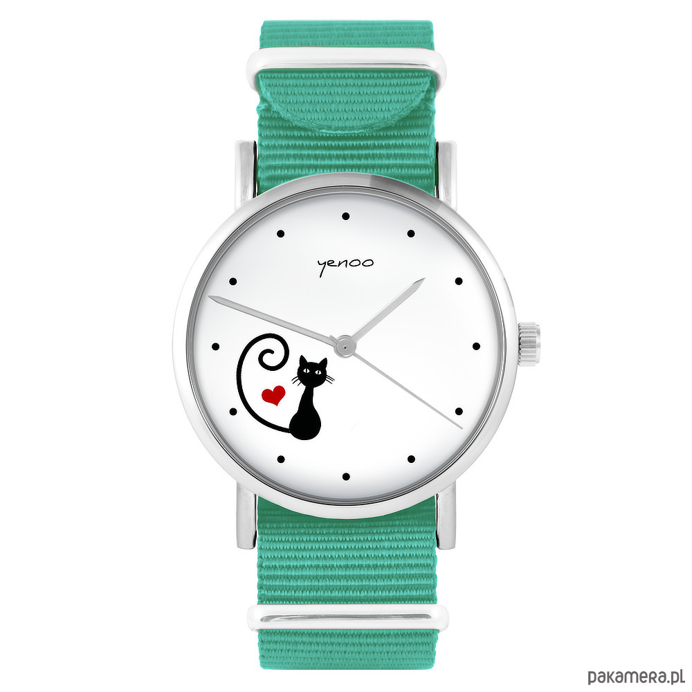 Zegarek - Kotek serce - turkusowy, nylonowy