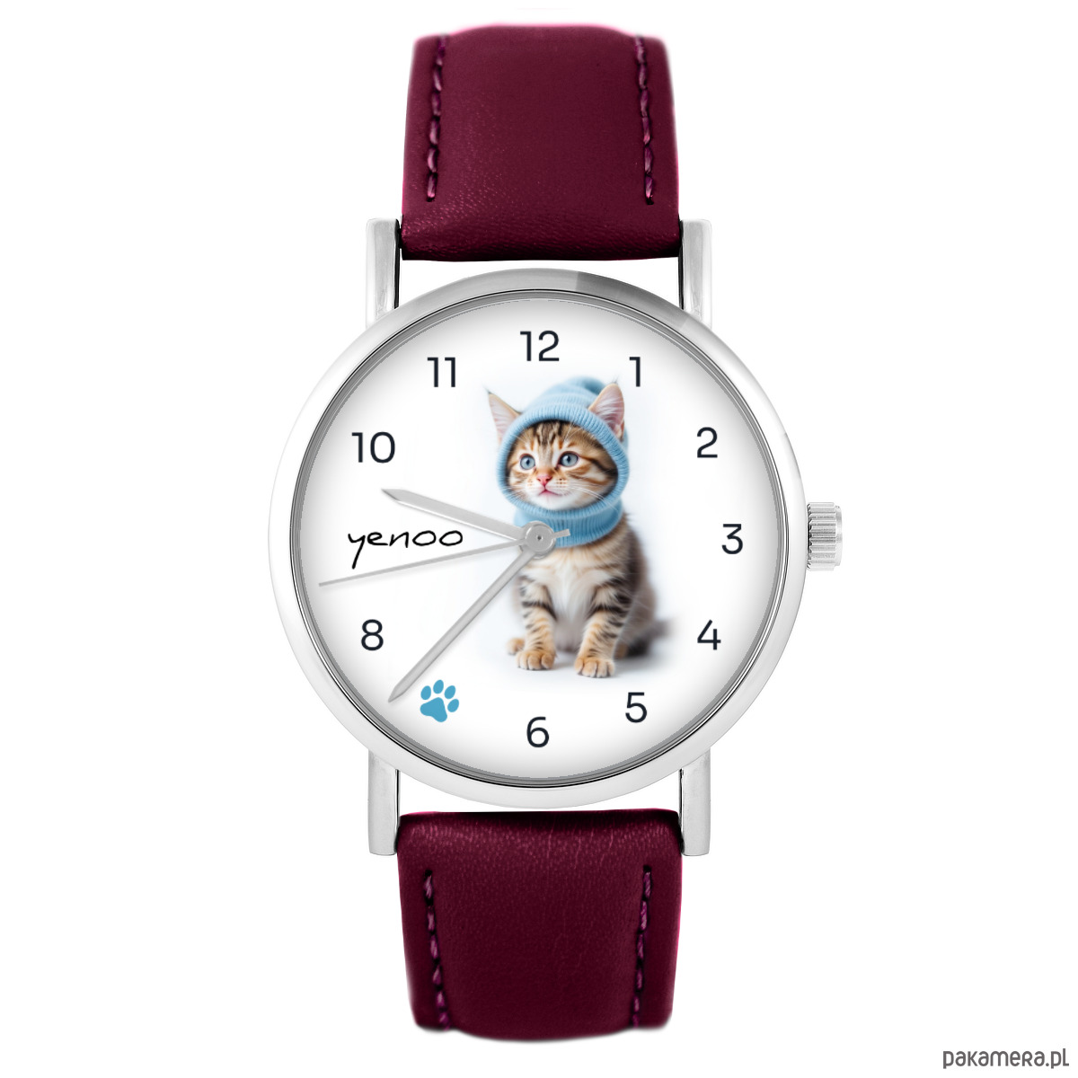 Zegarek - Kotek - skórzany, burgund