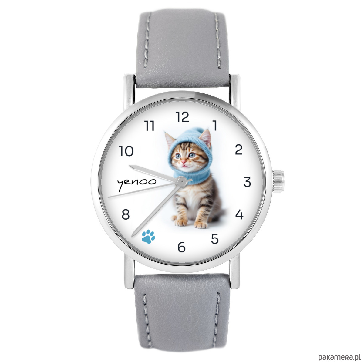 Zegarek - Kotek - szary, skórzany