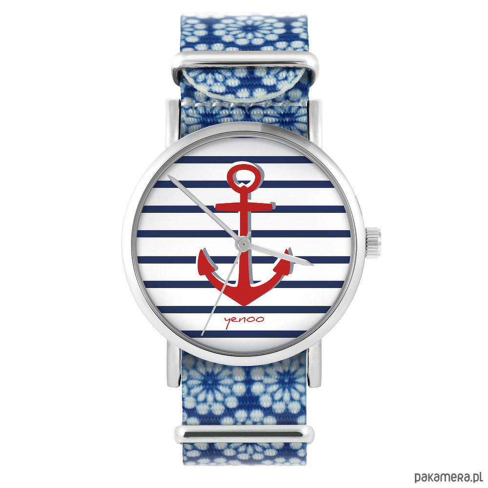 Zegarek - Kotwica - niebieski, kwiaty