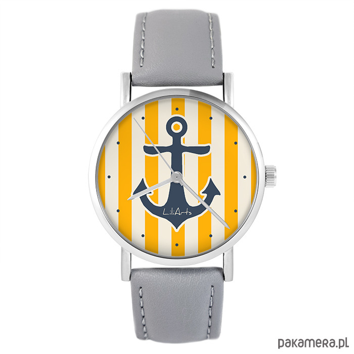 Zegarek - Kotwica żółta - skóra, szary