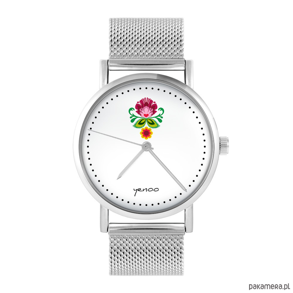 Zegarek - Kwiat folkowy - bransoleta mesh