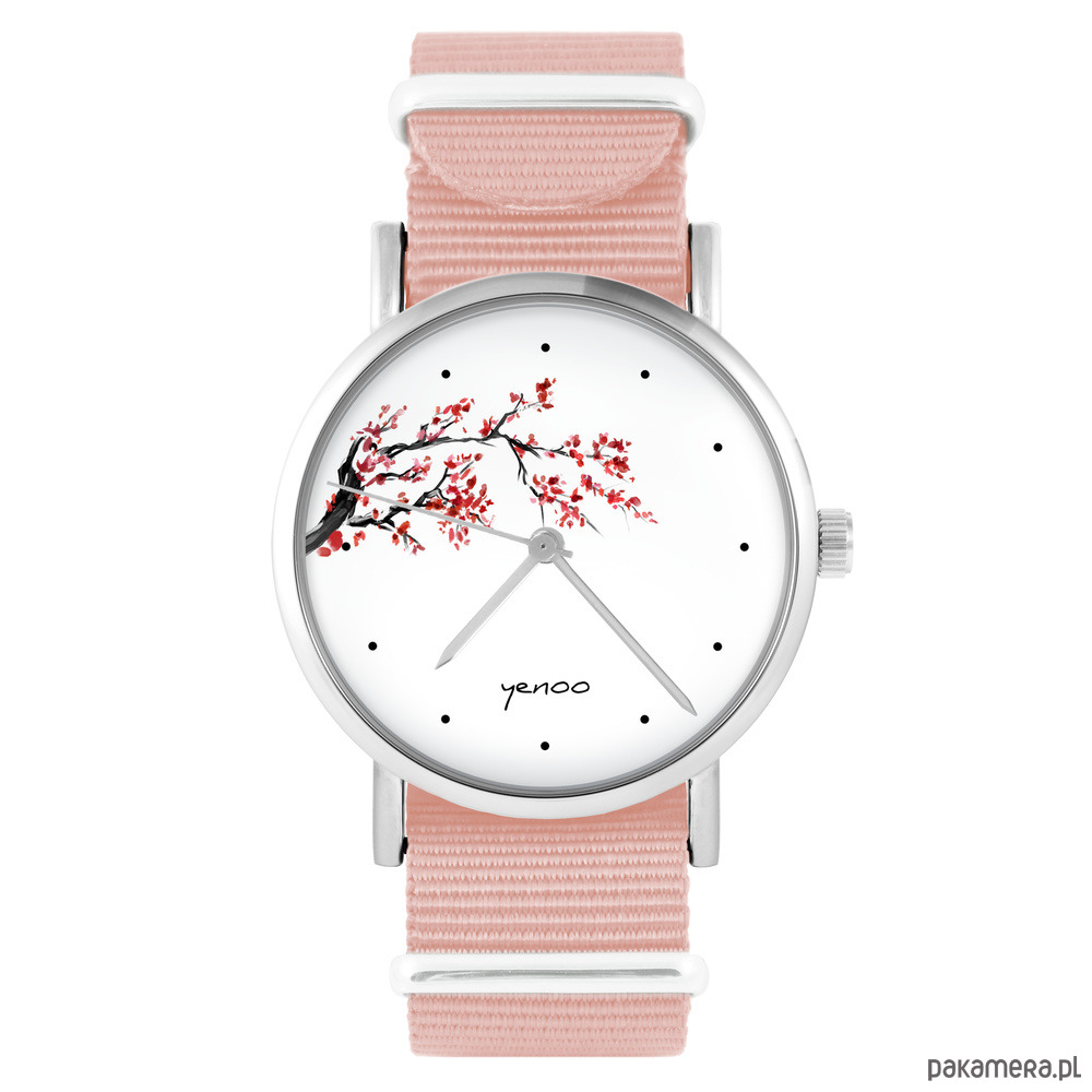 Zegarek - Kwitnąca wiśnia - brzoskwiniowy róż