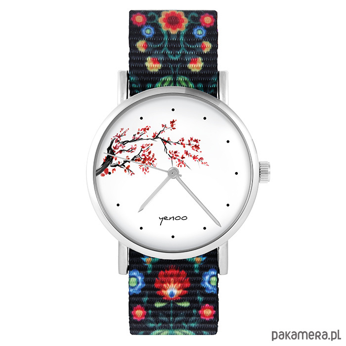 Zegarek - Kwitnąca wiśnia - folk czarny, nato