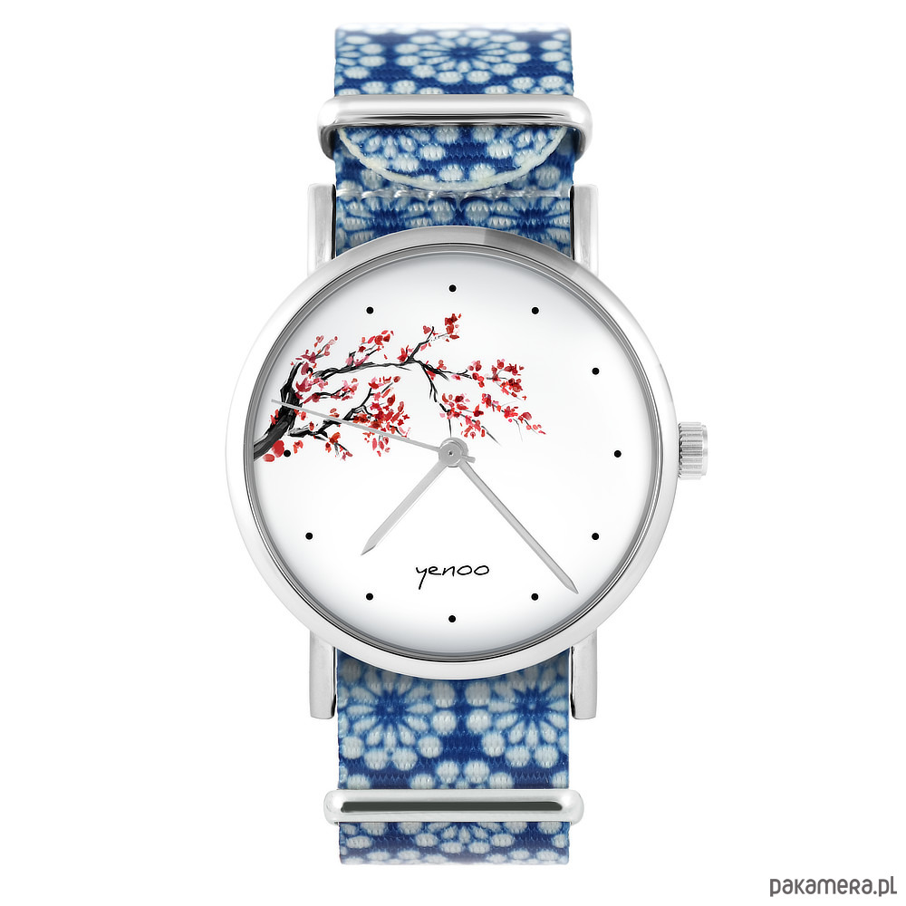 Zegarek - Kwitnąca wiśnia - niebieski