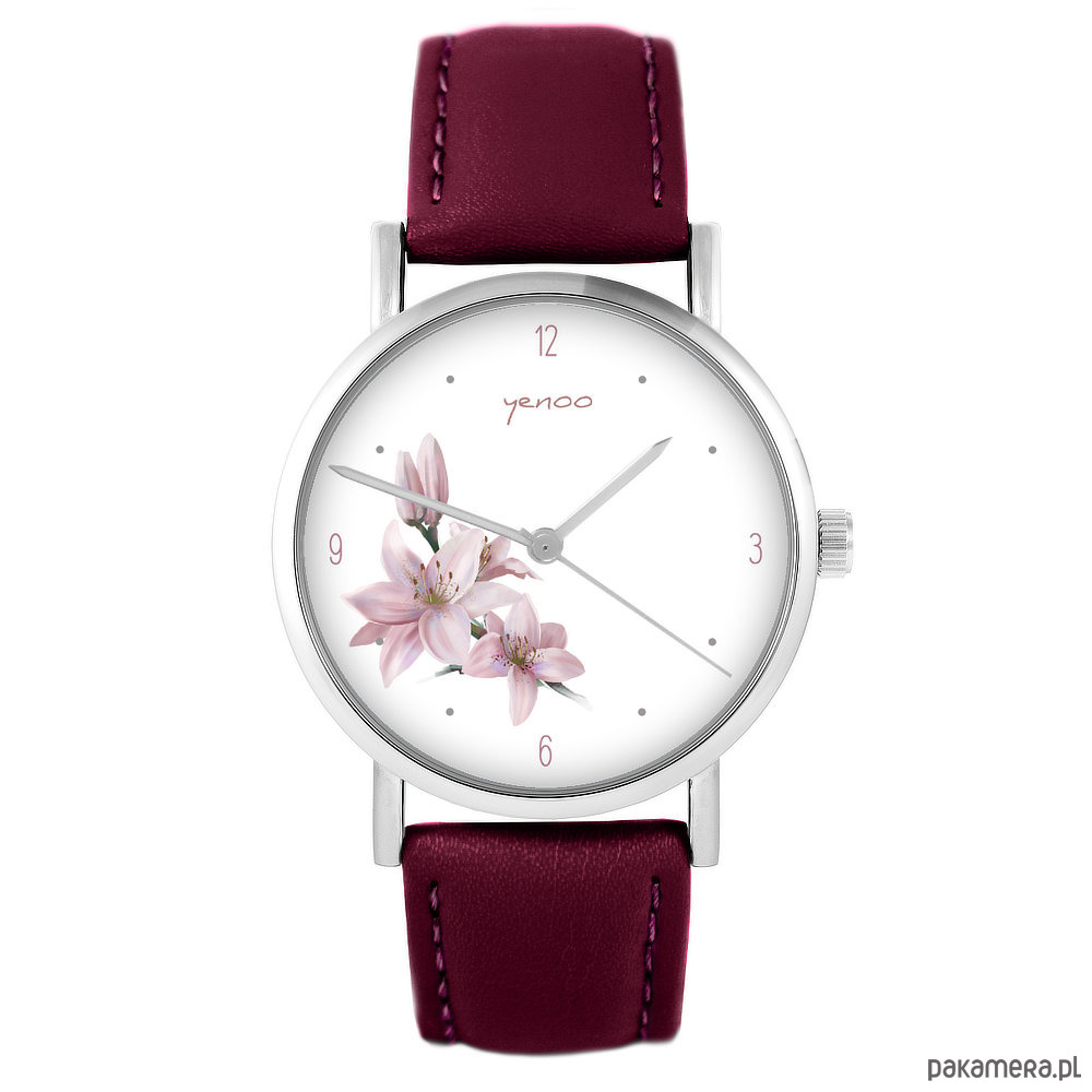 Zegarek - Lilia - skórzany, burgund