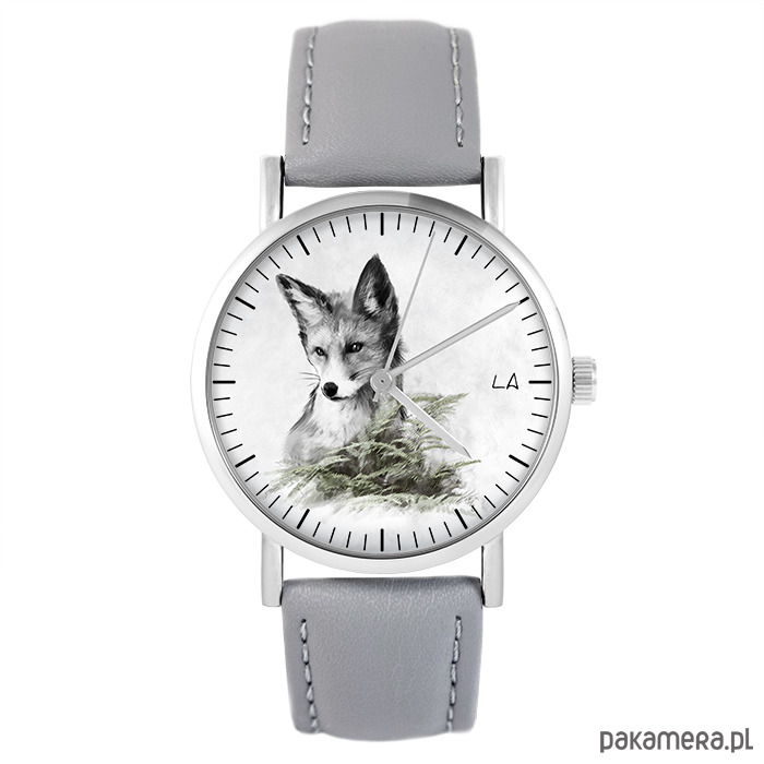 Zegarek - Lis - skóra, szary