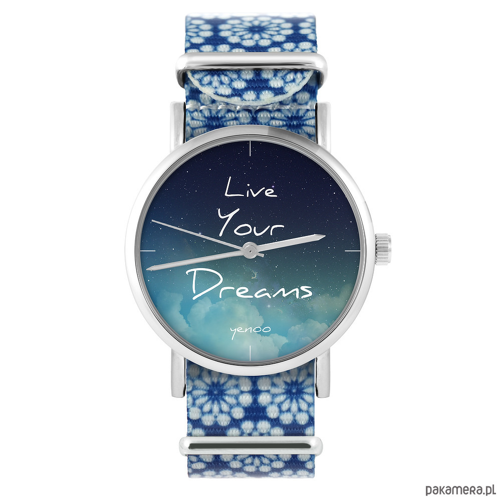 Zegarek - Live Your Dreams - niebieski, kwiaty