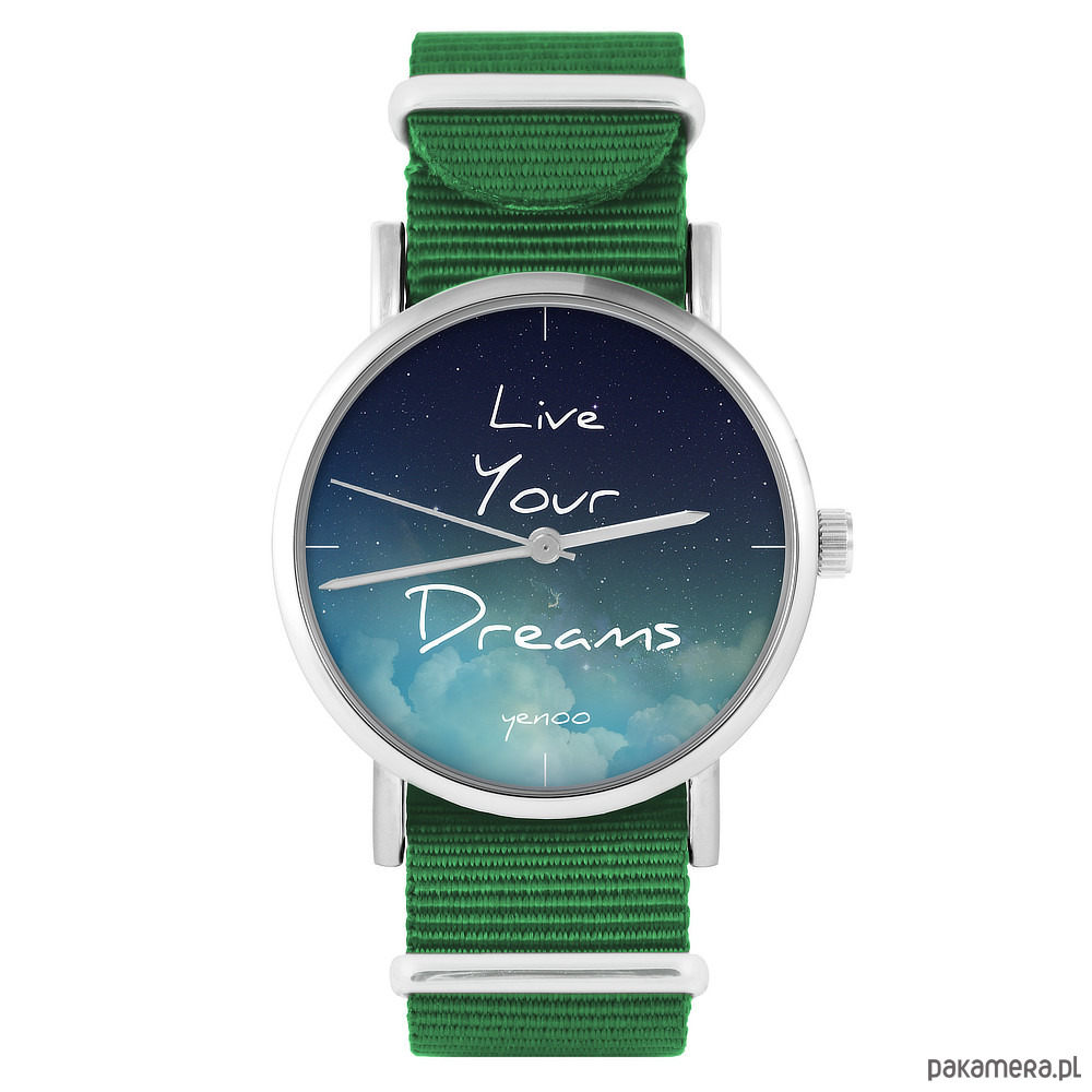 Zegarek - Live Your Dreams - zielony, nylonowy