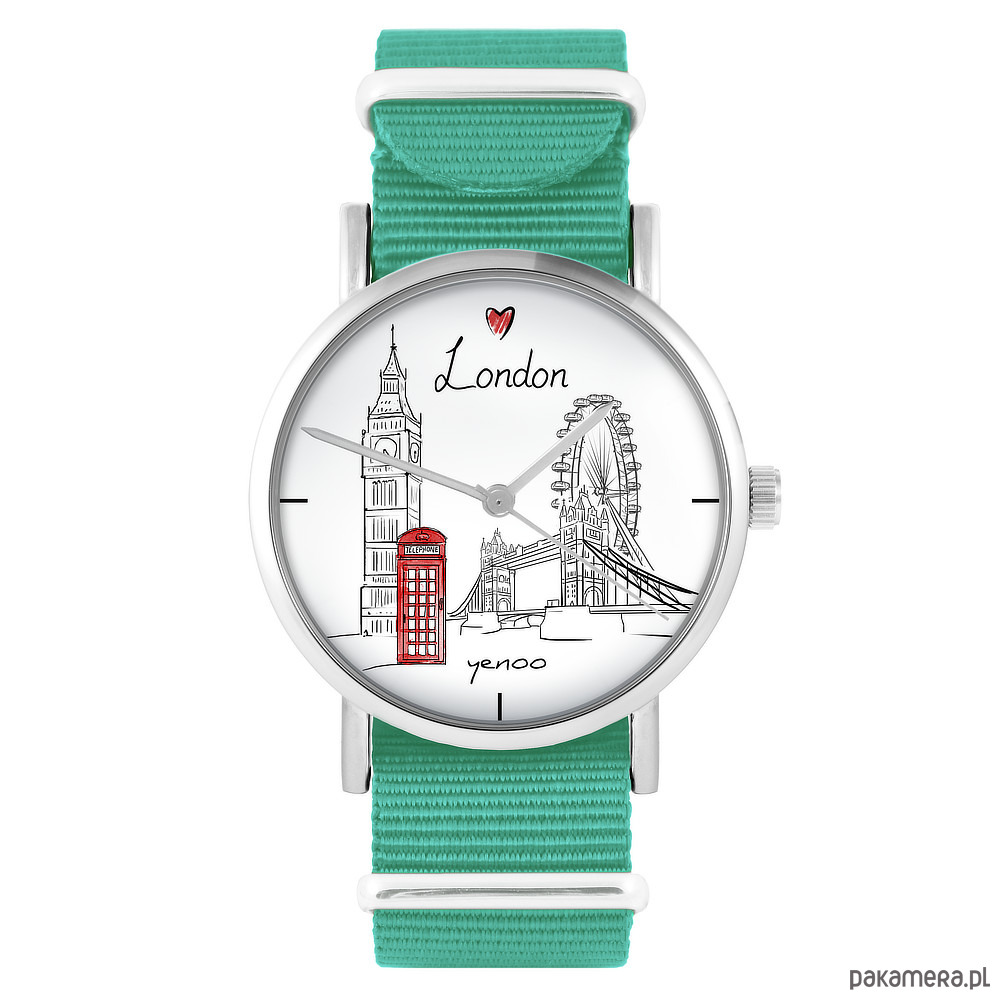 Zegarek - Londyn - turkusowy, nylonowy