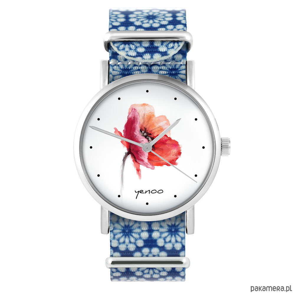 Zegarek - Mak - niebieski, kwiaty