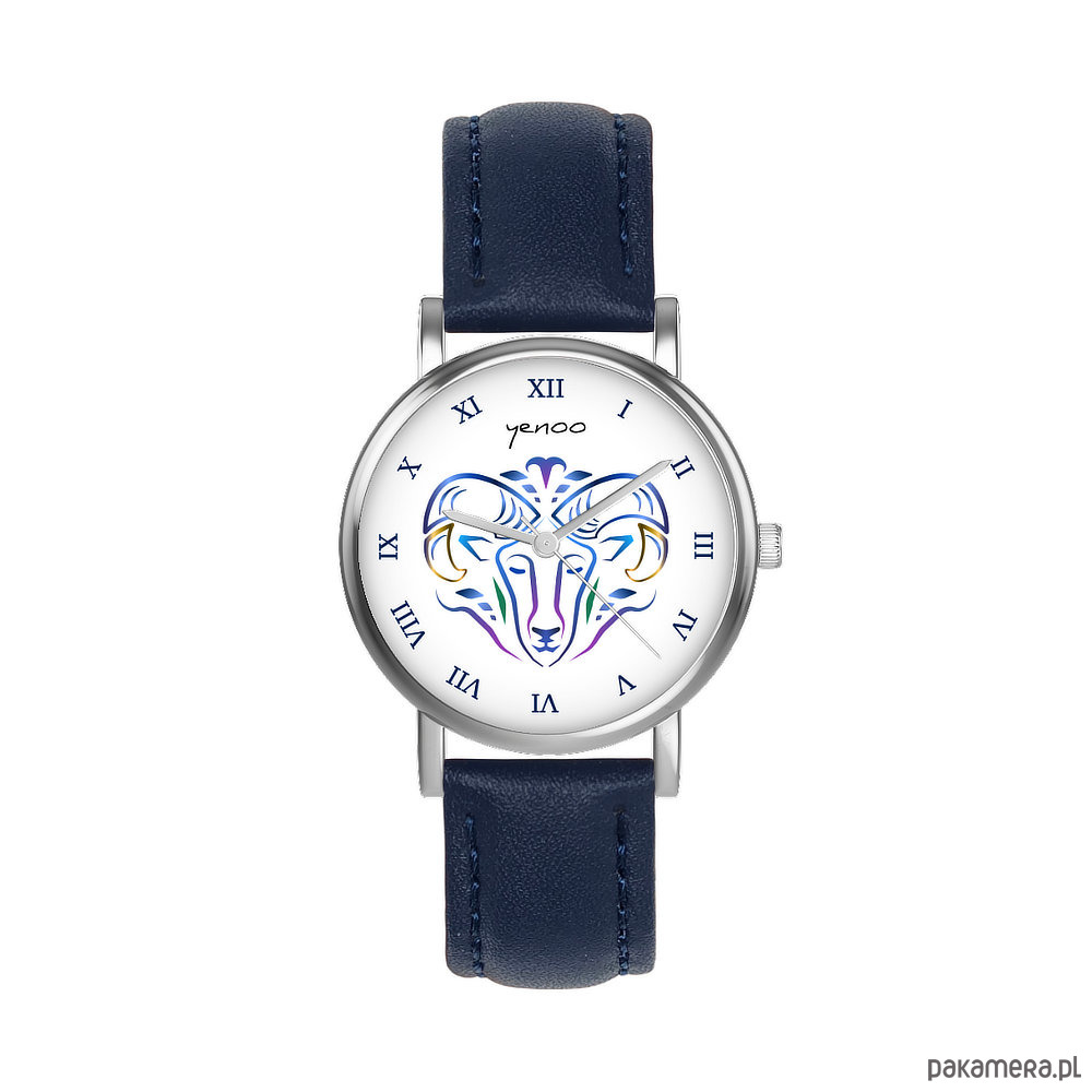 Zegarek mały - Baran - skórzany, granatowy
