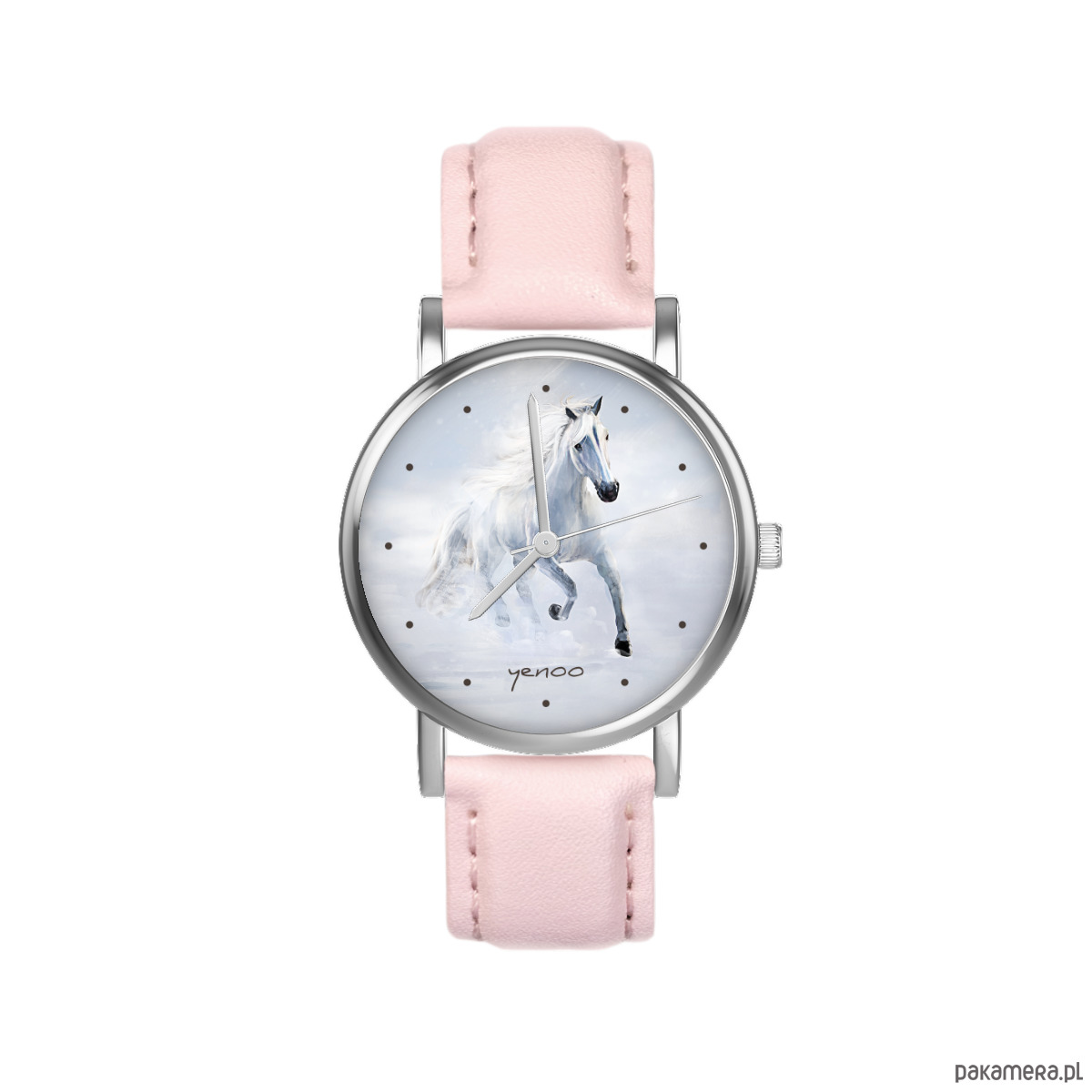 Zegarek mały - Biały koń biegnący - skórzany, pudrowy róż