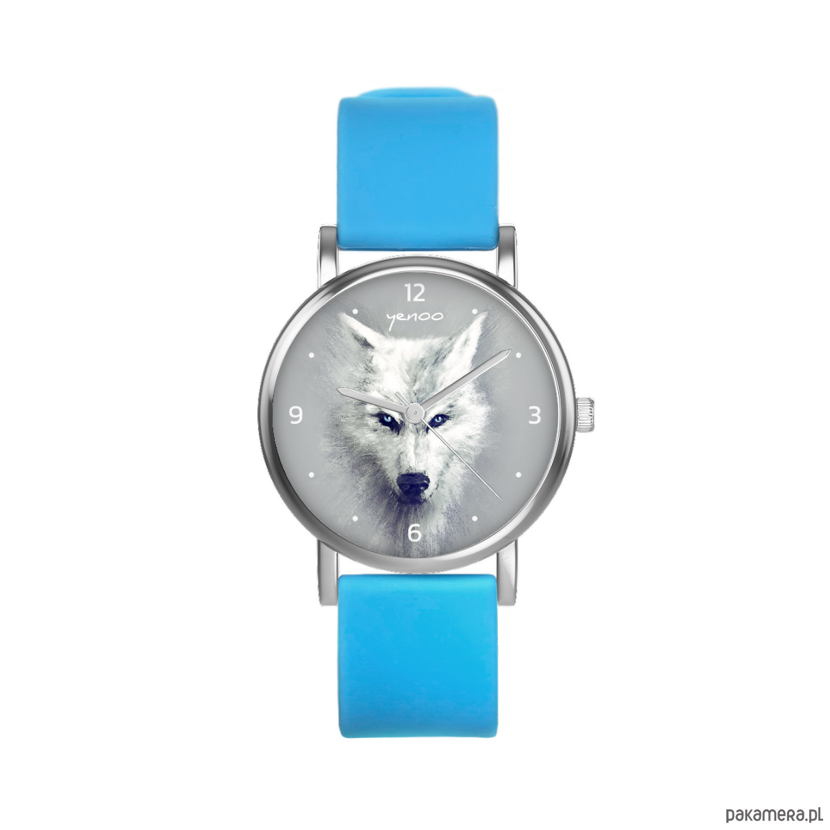 Zegarek mały - Biały wilk - silikonowy, niebieski