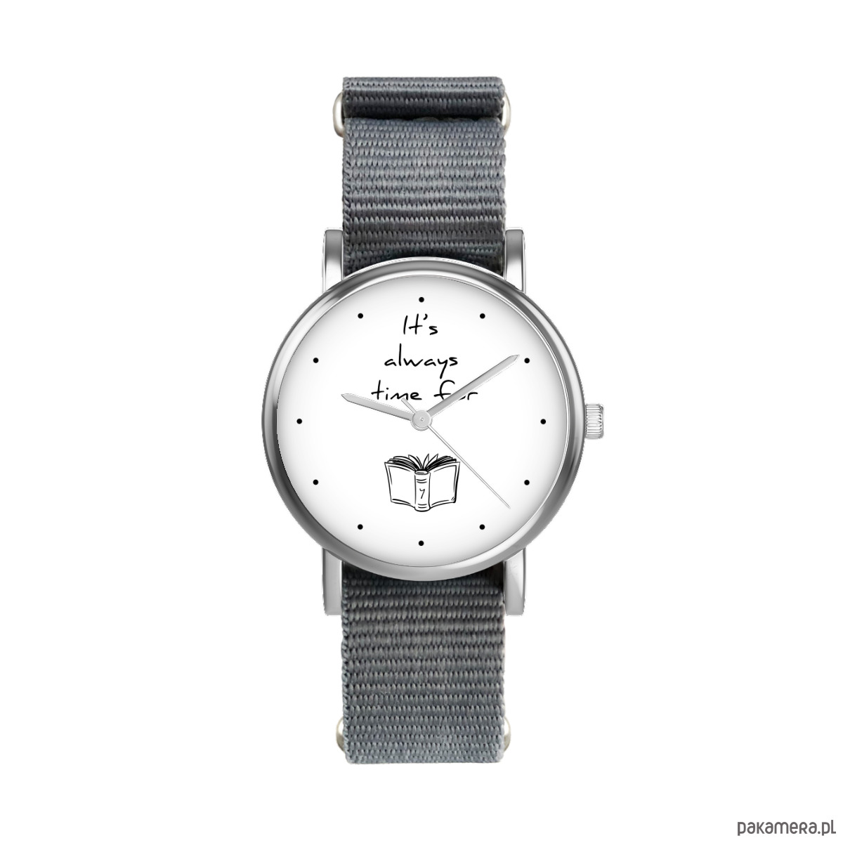 Zegarek mały - Book time - nylonowy, szary