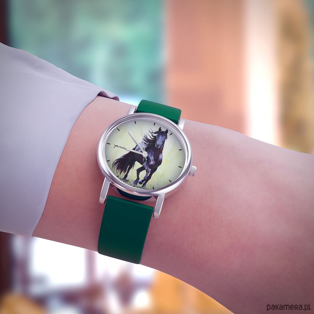 Zegarek mały - Czarny koń 2 - silikonowy, zielony