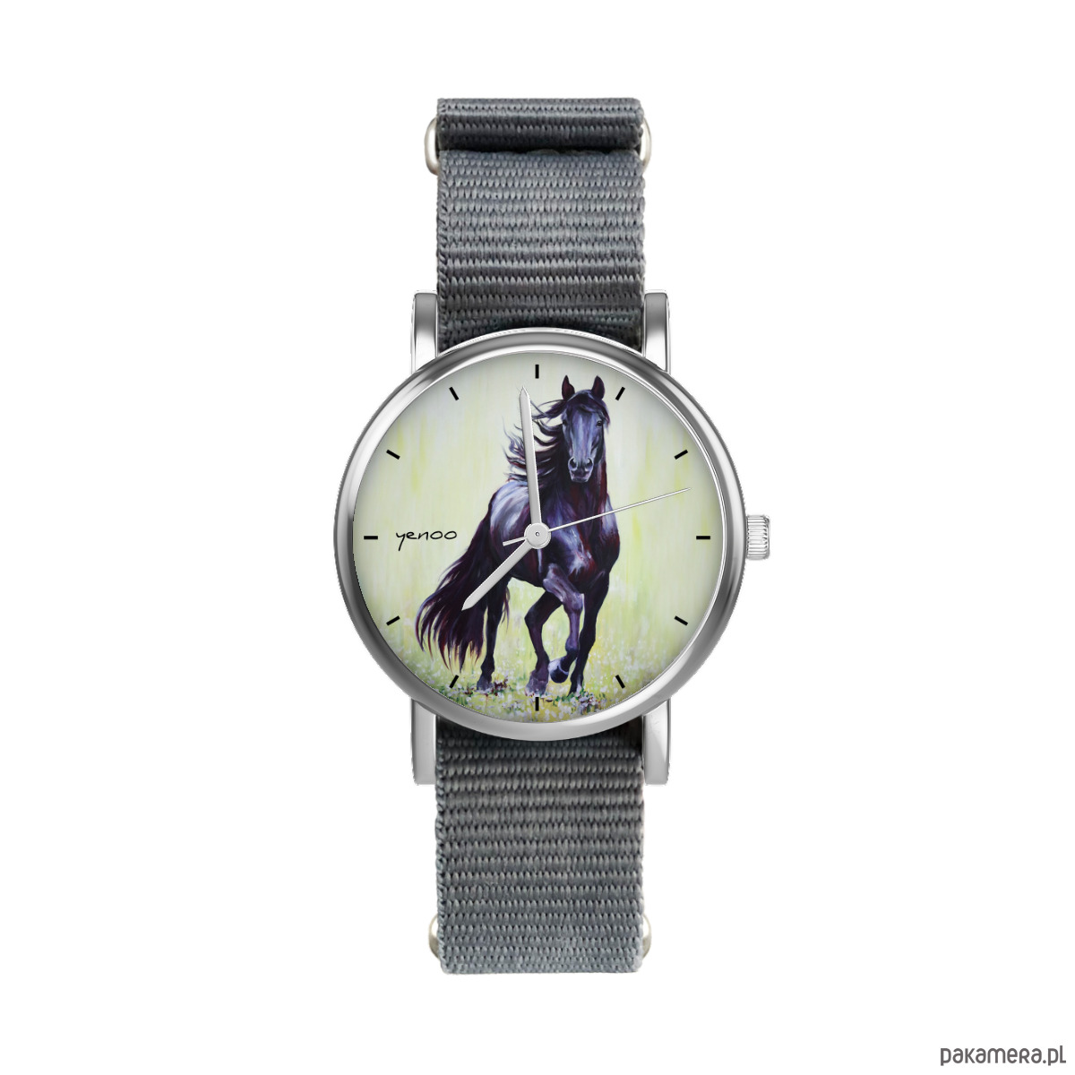 Zegarek mały - Czarny koń malowany - nylonowy, szary
