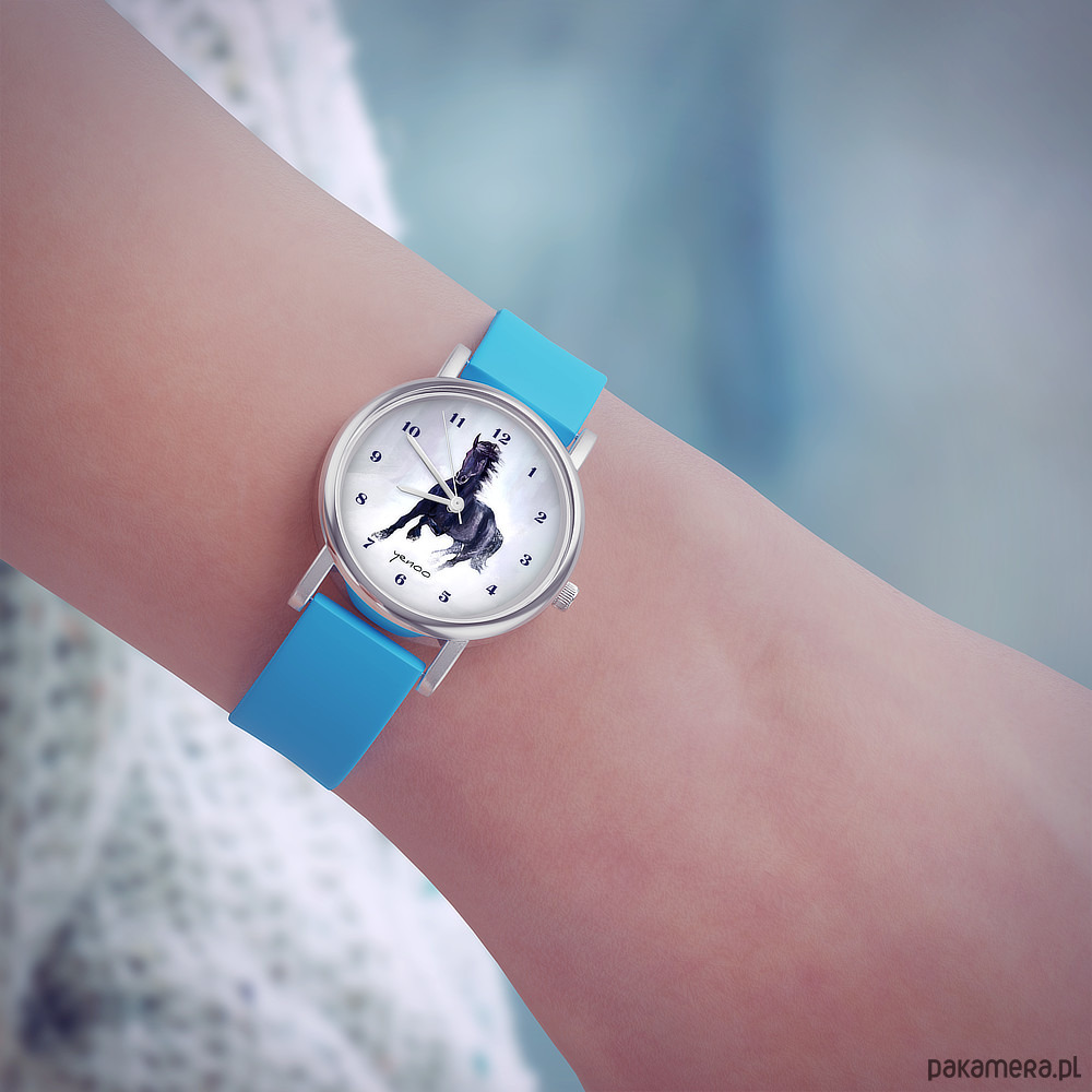 Zegarek mały - Czarny koń - silikonowy, niebieski