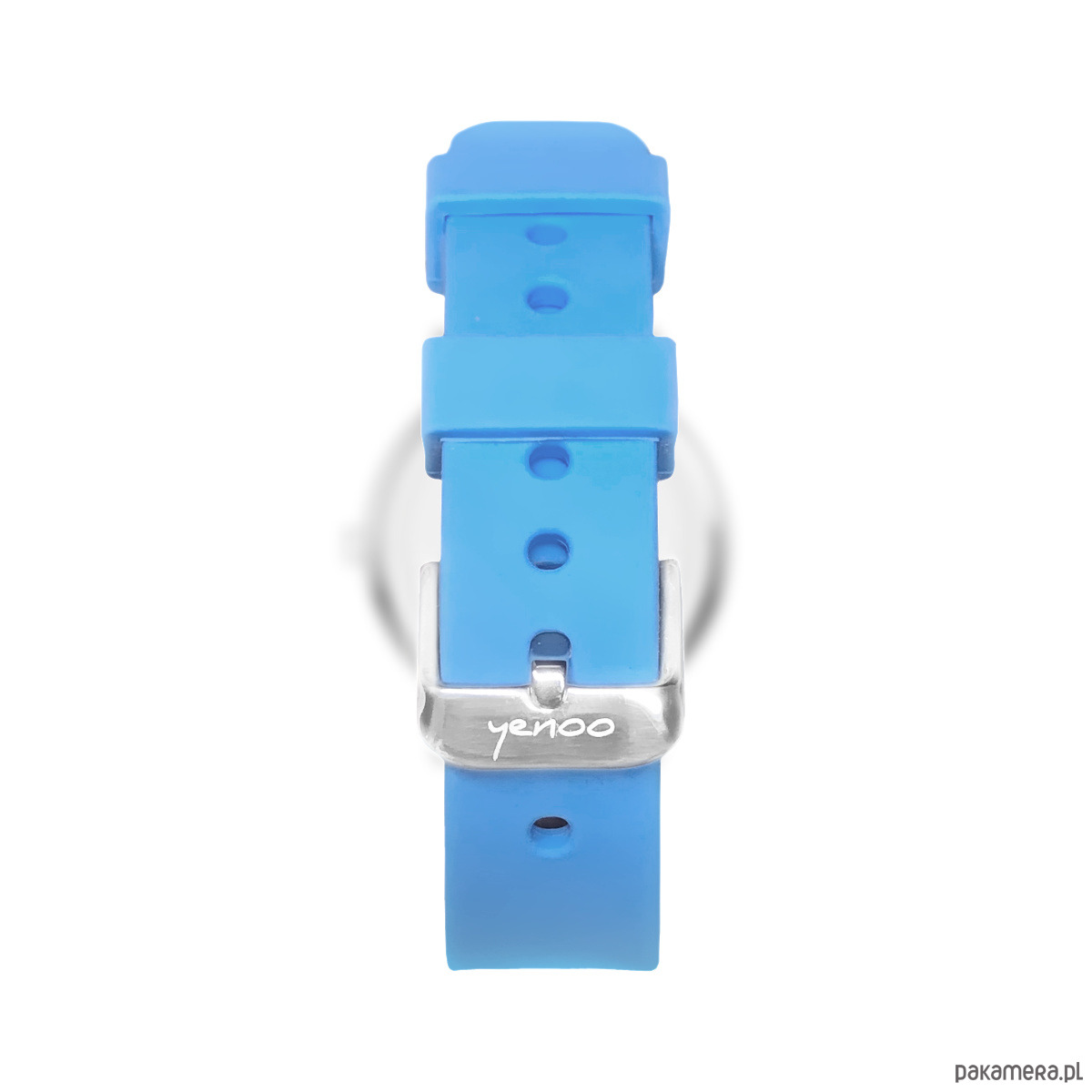 Pasek wykonany jest z silikonu, zapinanie na klamrę.
