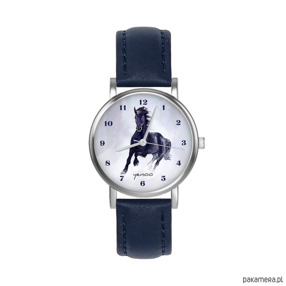 Zegarek mały - Czarny koń - skórzany, granatowy