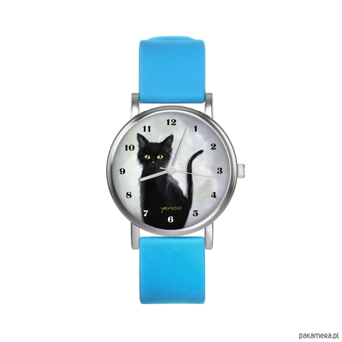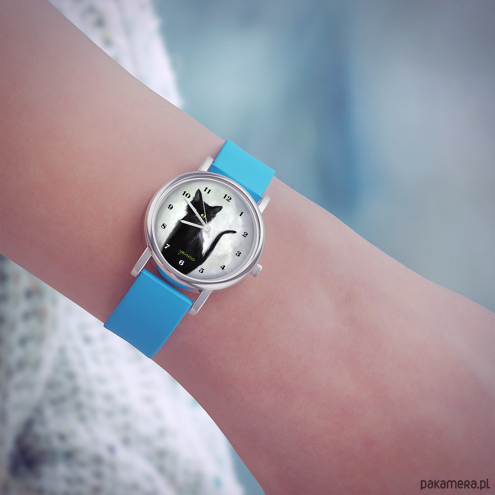 Zegarek mały - Czarny kot - silikonowy, niebieski