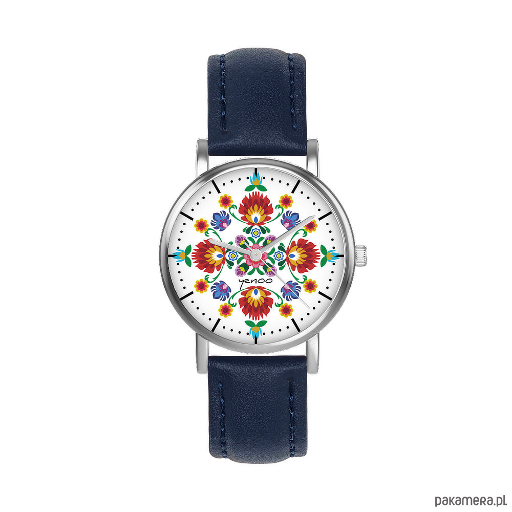 Zegarek mały - Folkowa mandala - skórzany, granatowy