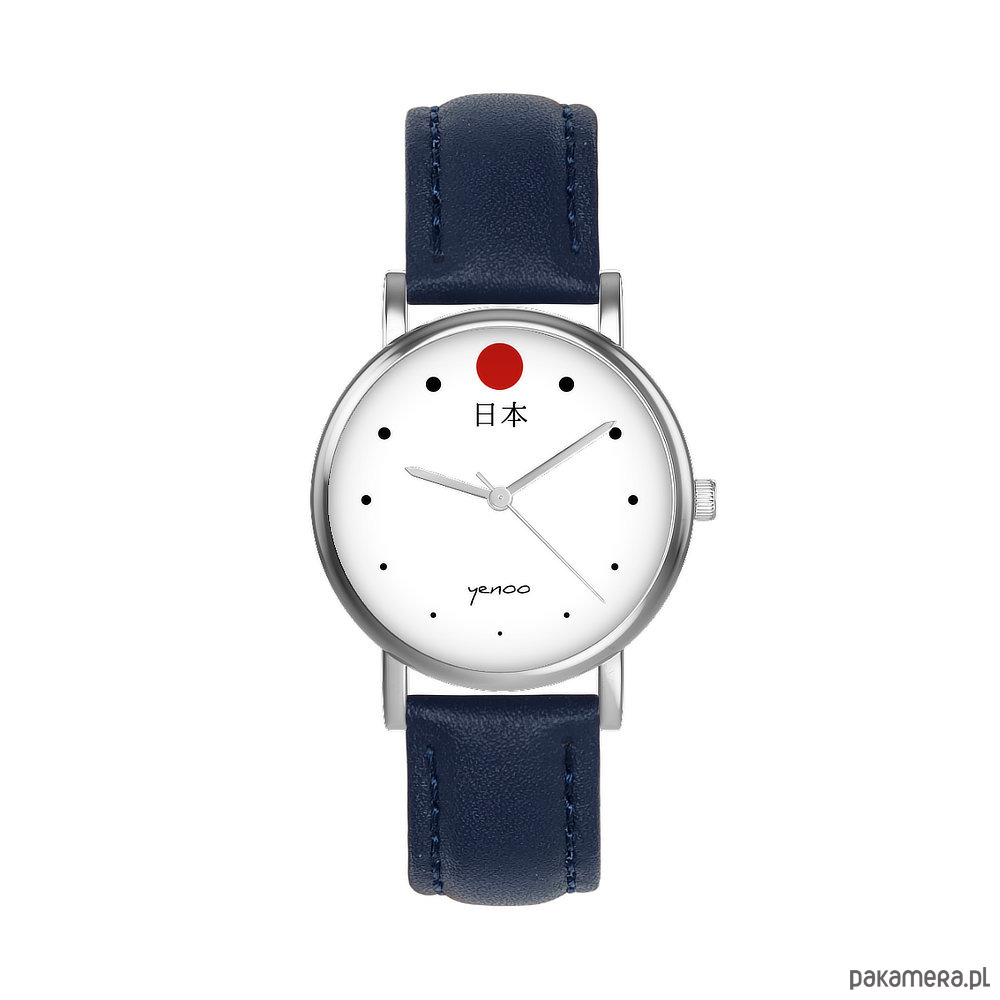 Zegarek mały - Japonia - skórzany, granatowy