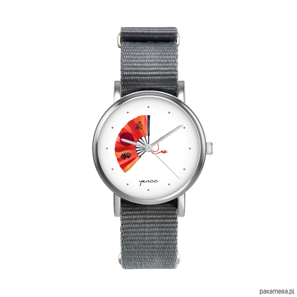 Zegarek mały - Japoński wachlarz - nylonowy, szary