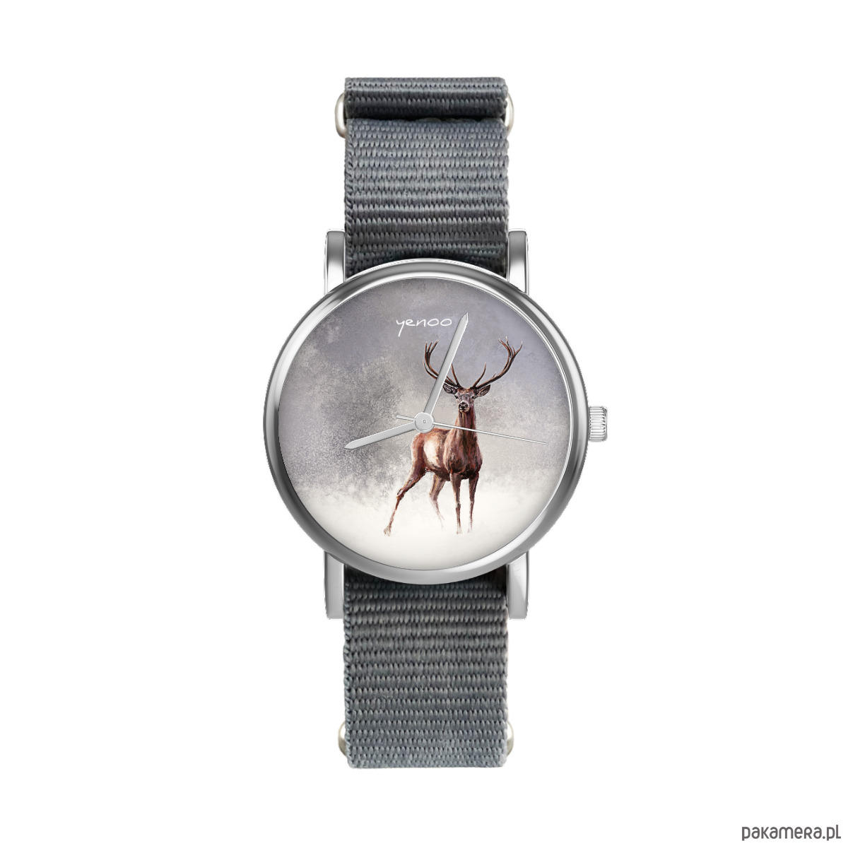 Zegarek mały - Jeleń 2 - nylonowy, szary