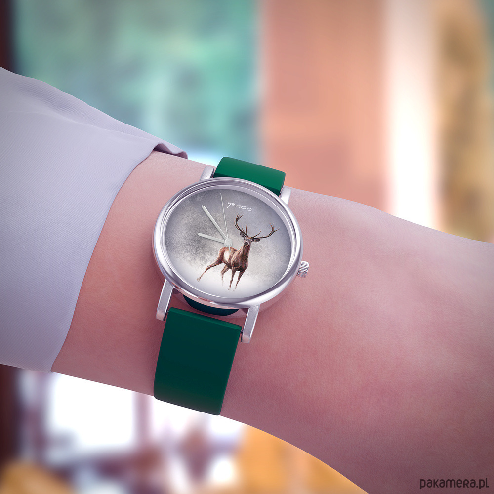 Zegarek mały - Jeleń 2 - silikonowy, zielony