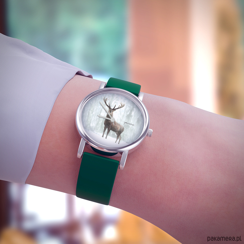 Zegarek mały - Jeleń 3 - silikonowy, zielony