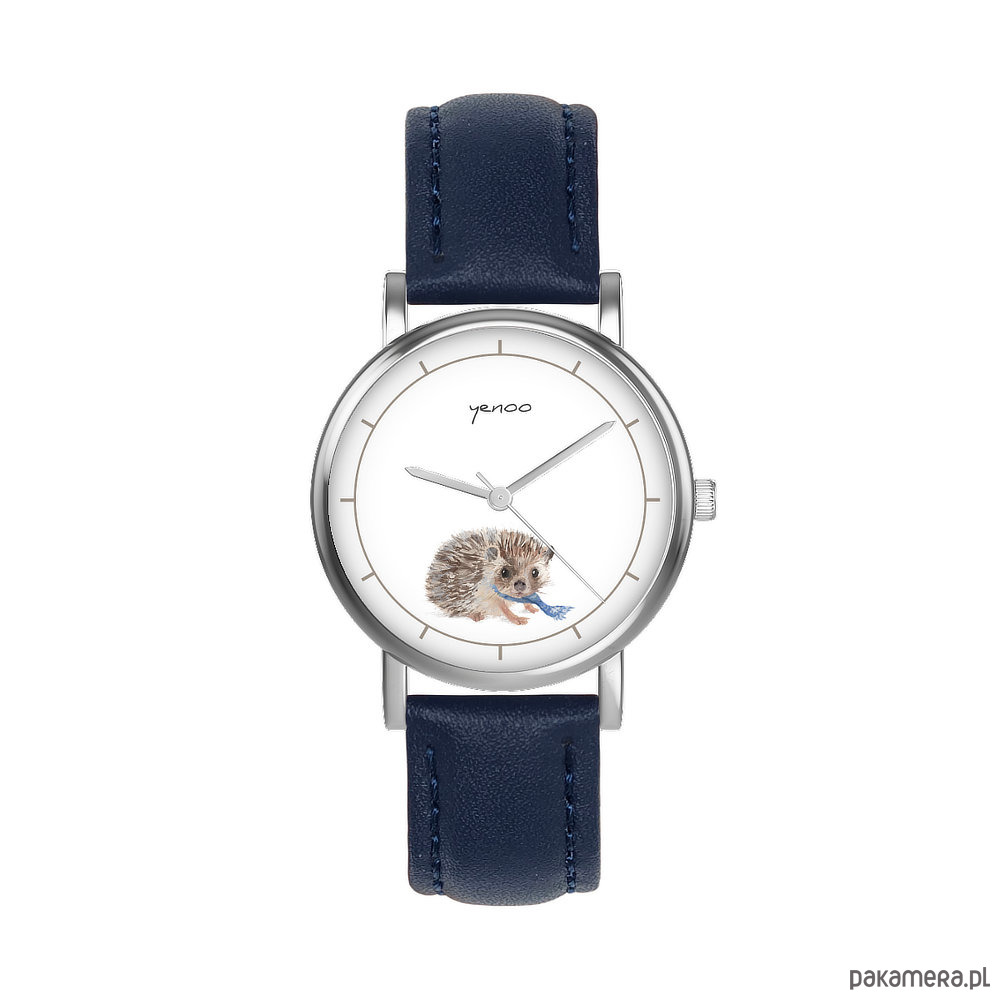 Zegarek mały - Jeżyk - skórzany, granatowy