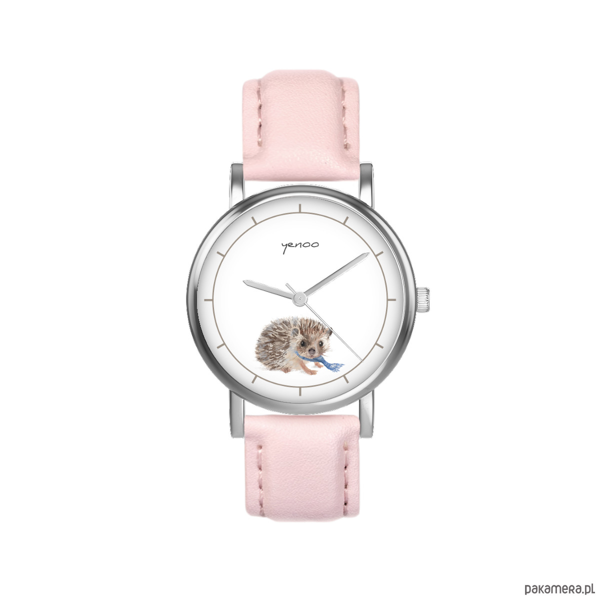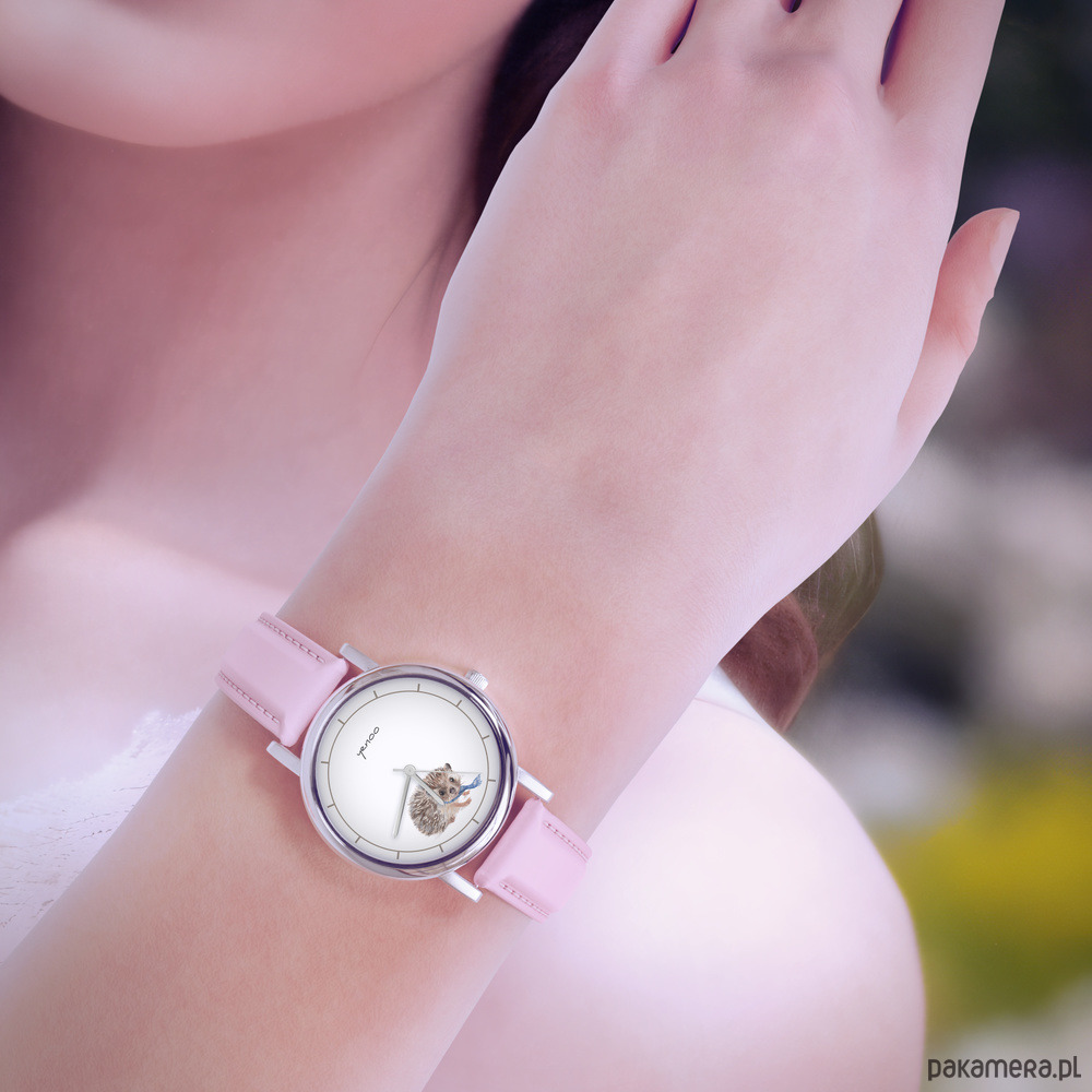 Zegarek mały - Jeżyk - skórzany, pudrowy róż