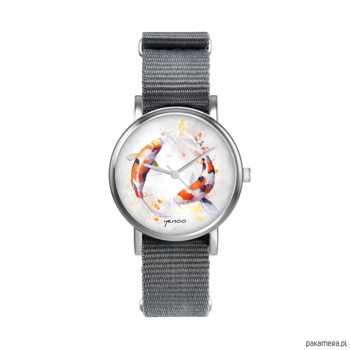 Zegarek mały - Karpie Koi - nylonowy, szary