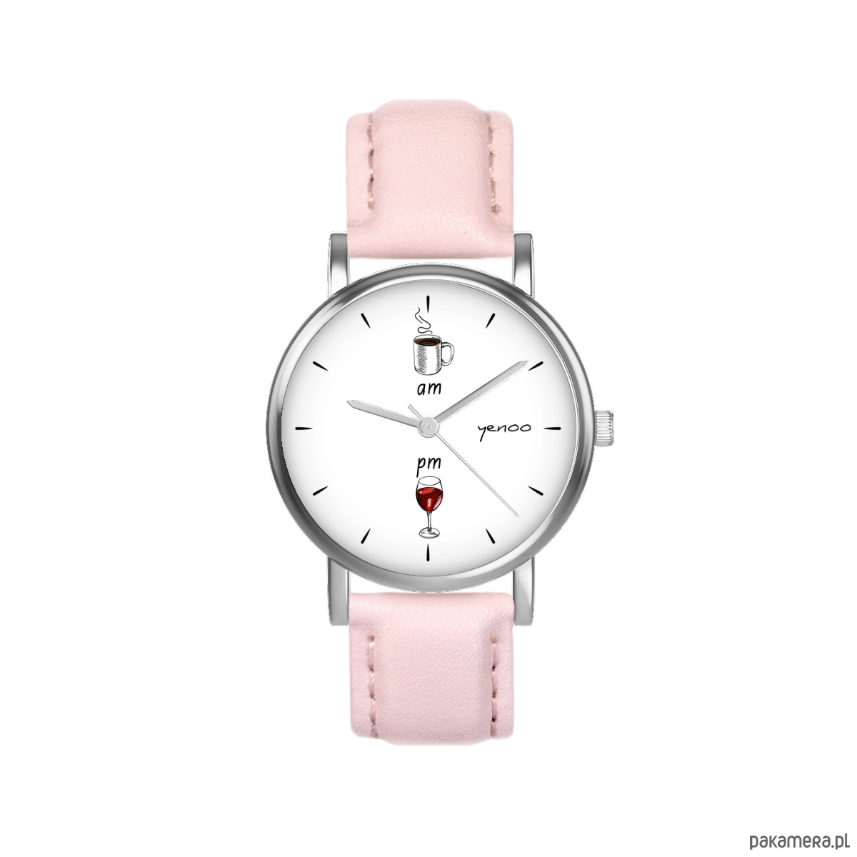Zegarek mały - Kawa i wino - skórzany, pudrowy róż