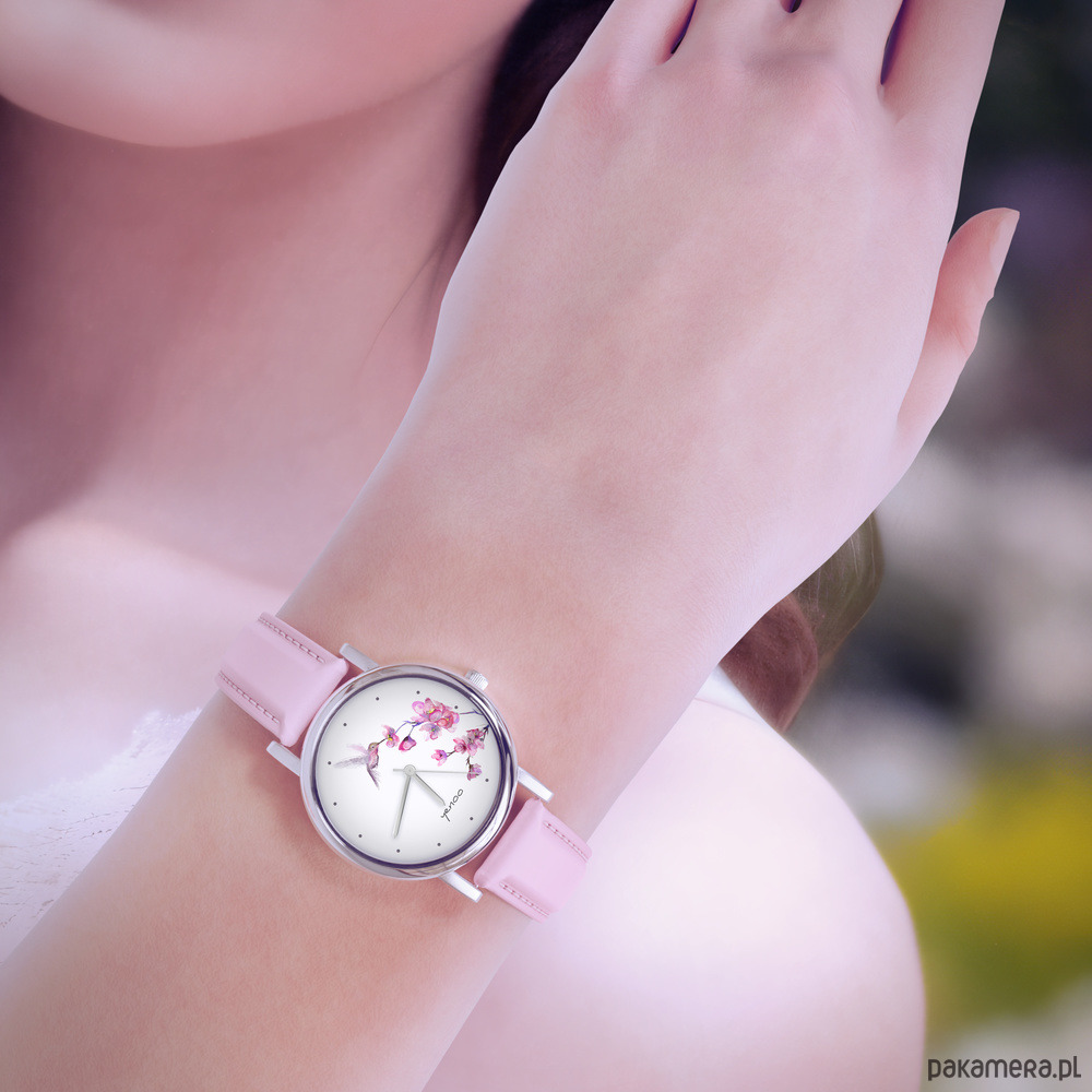 Zegarek mały - Koliber - skórzany, pudrowy róż