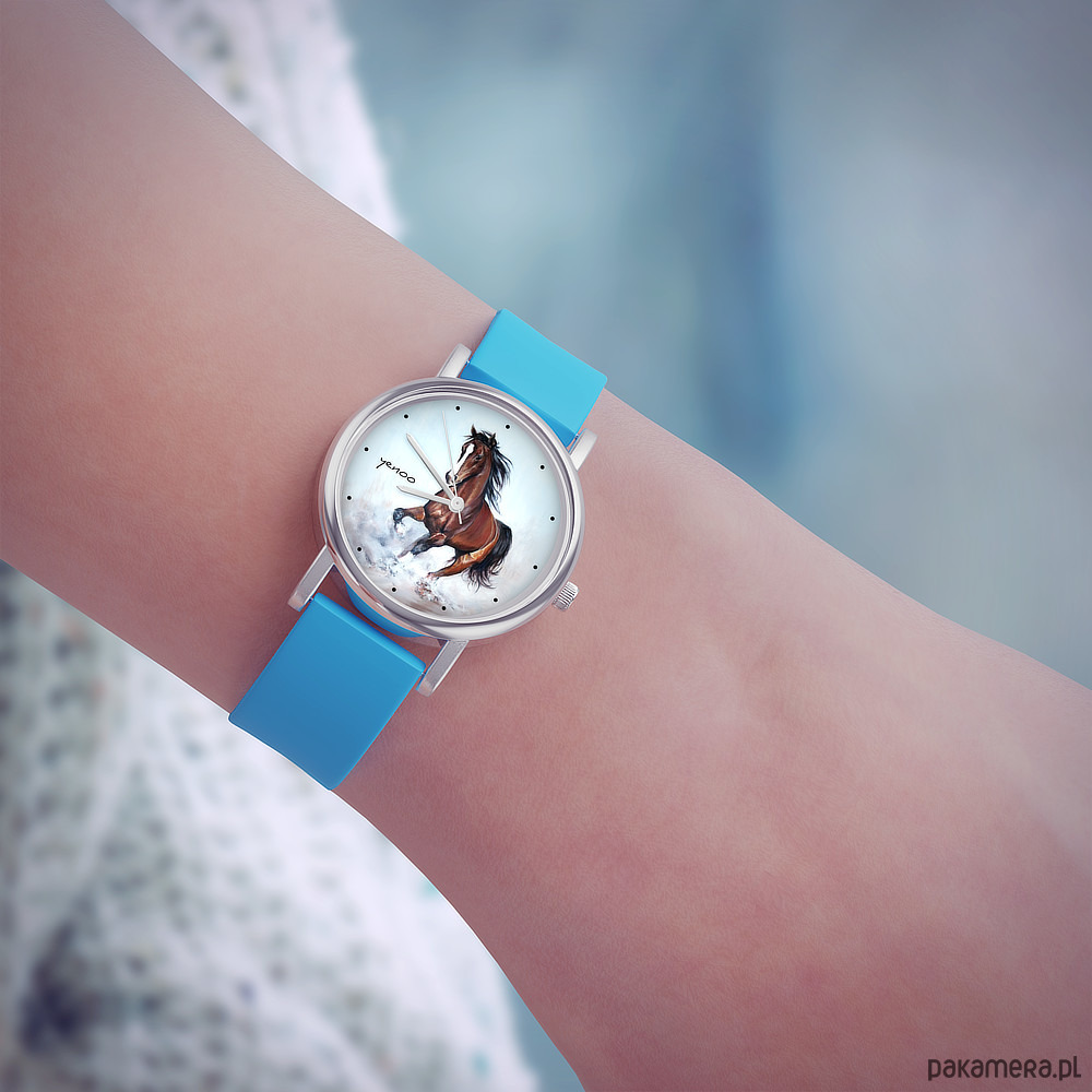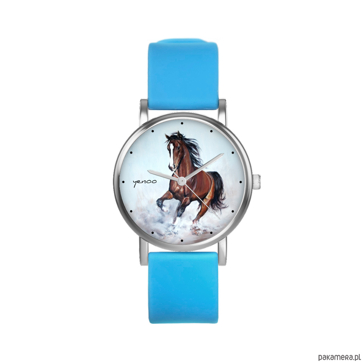 Zegarek mały - Koń brązowy - silikonowy, niebieski